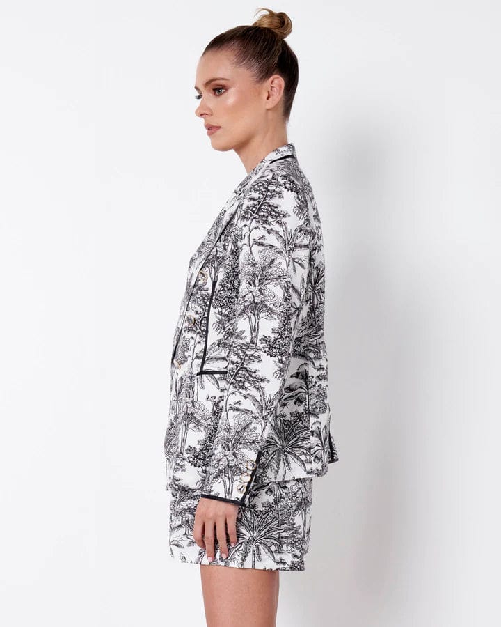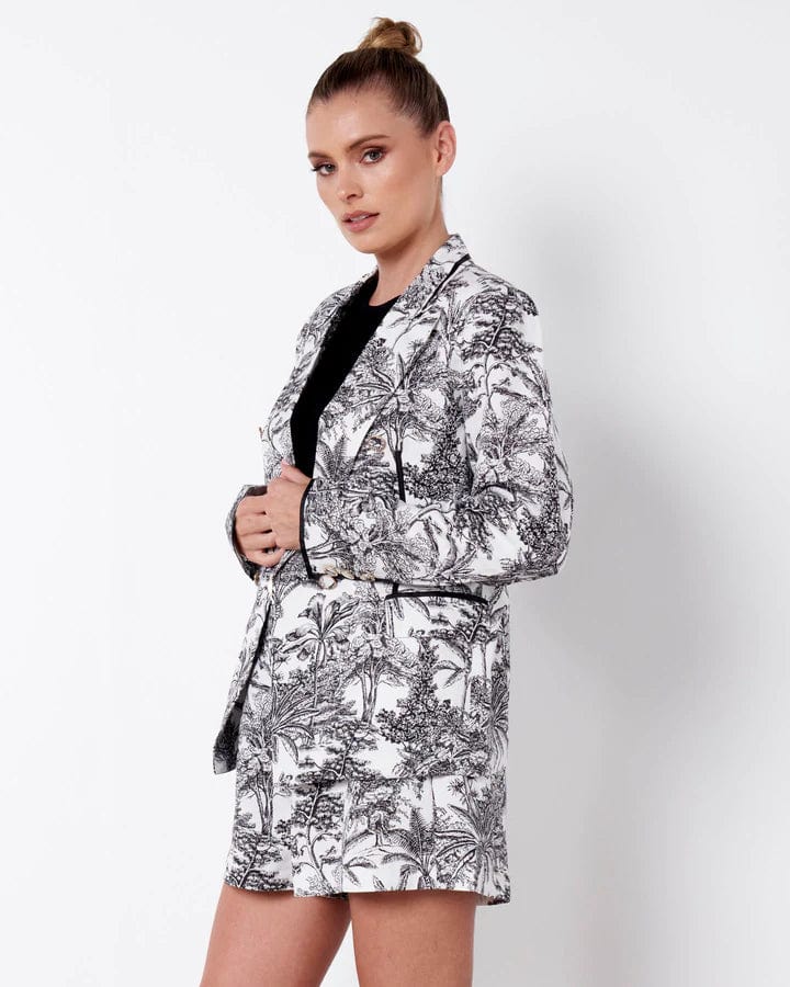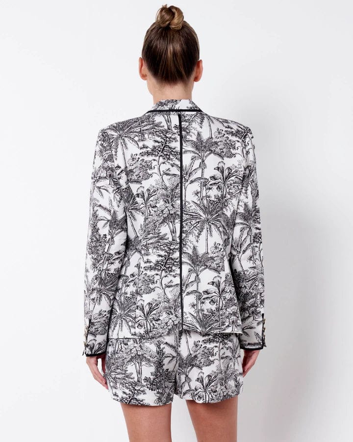 A printed blazer can elevate any outfit. Our Lovelight Blazer comes in the gorgeous monochromatic Borneo print. A stylish addition to any wardrobe. Made of a breathable viscose/Linen blend Borneo Print , style with black or pops of colour for the ultimate head turning look