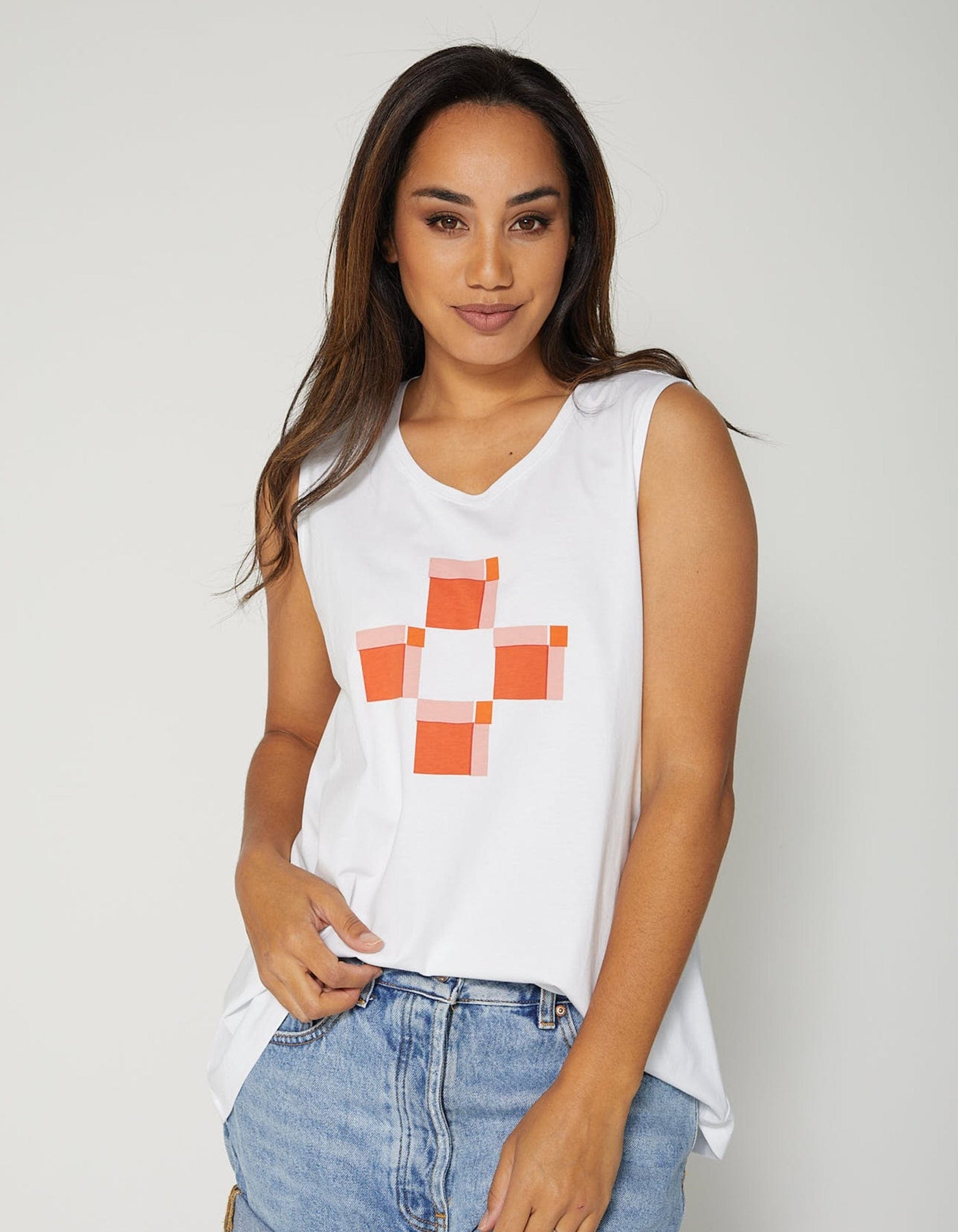 Stella + Gemma | Tank Top | White Apricot Check Cross